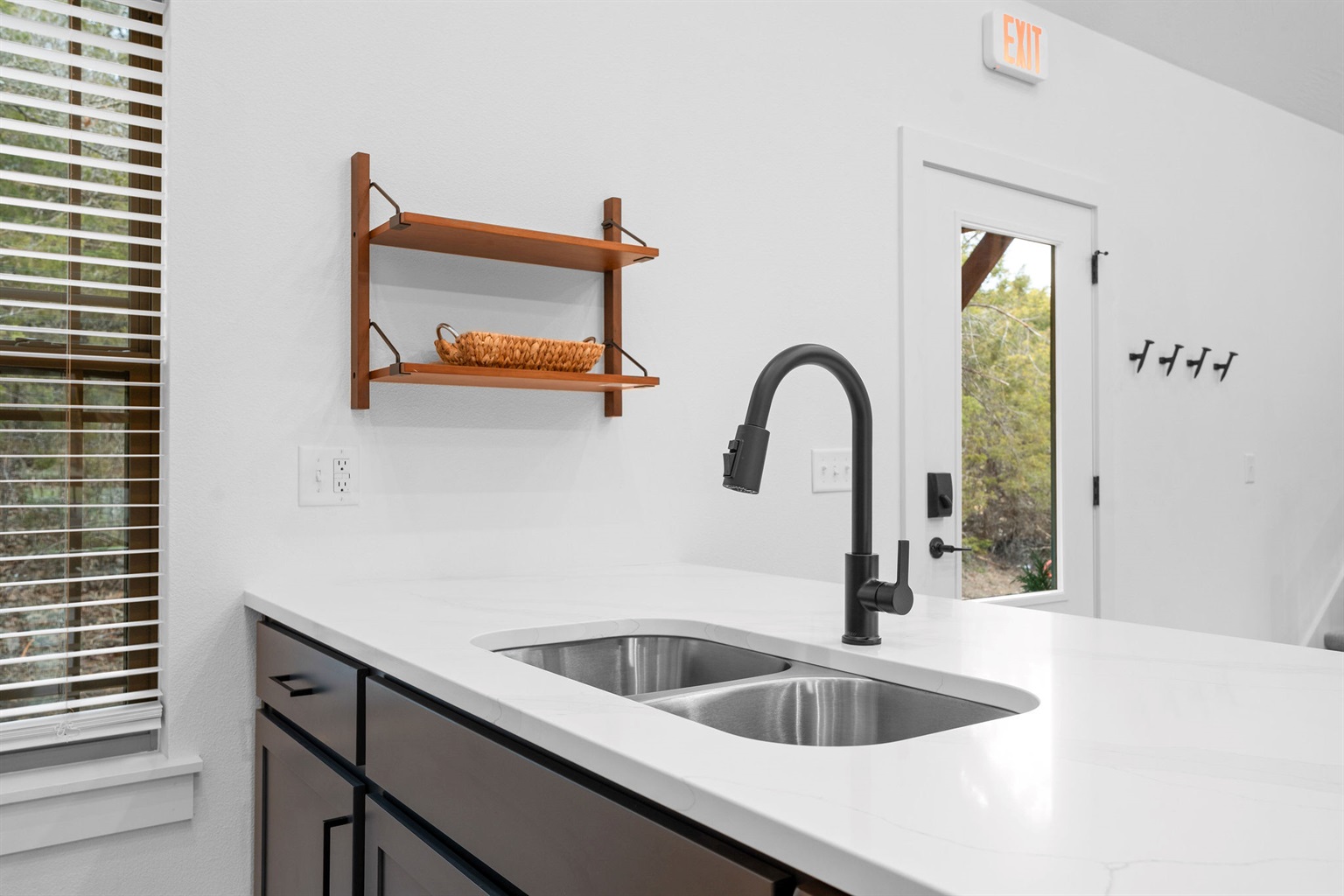 Clean, modern sink area with plenty of counter space.