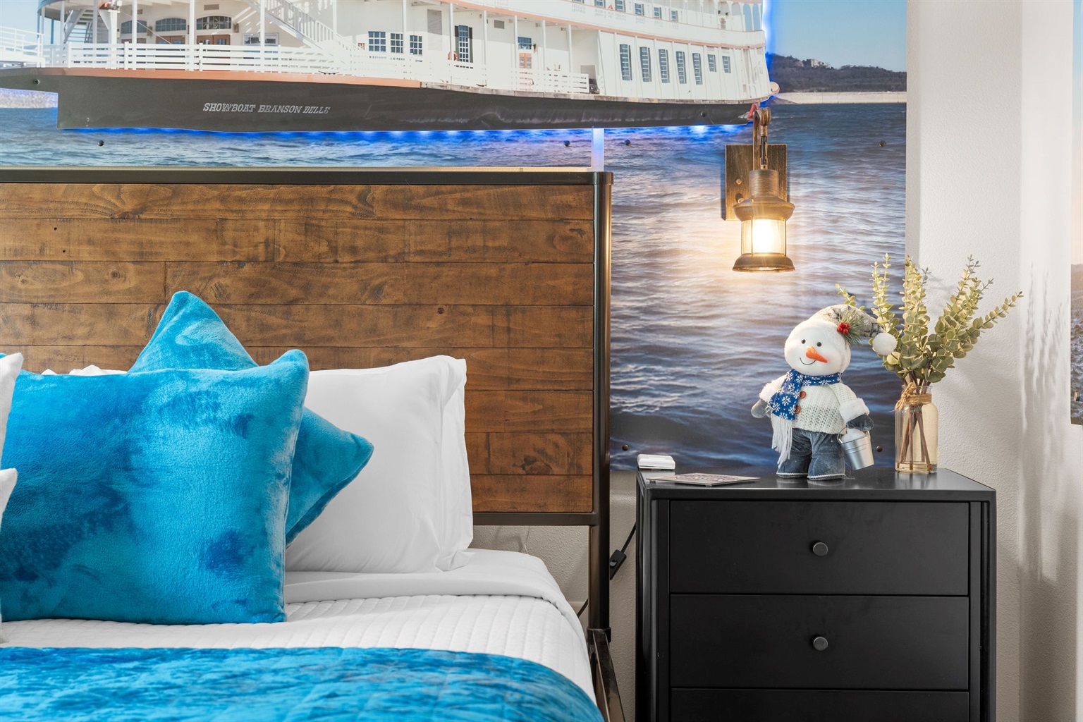 - Bedroom 1 (Main Level): Branson Belle Room - King bed, attached full bathroom (walk-in shower), Smart TV