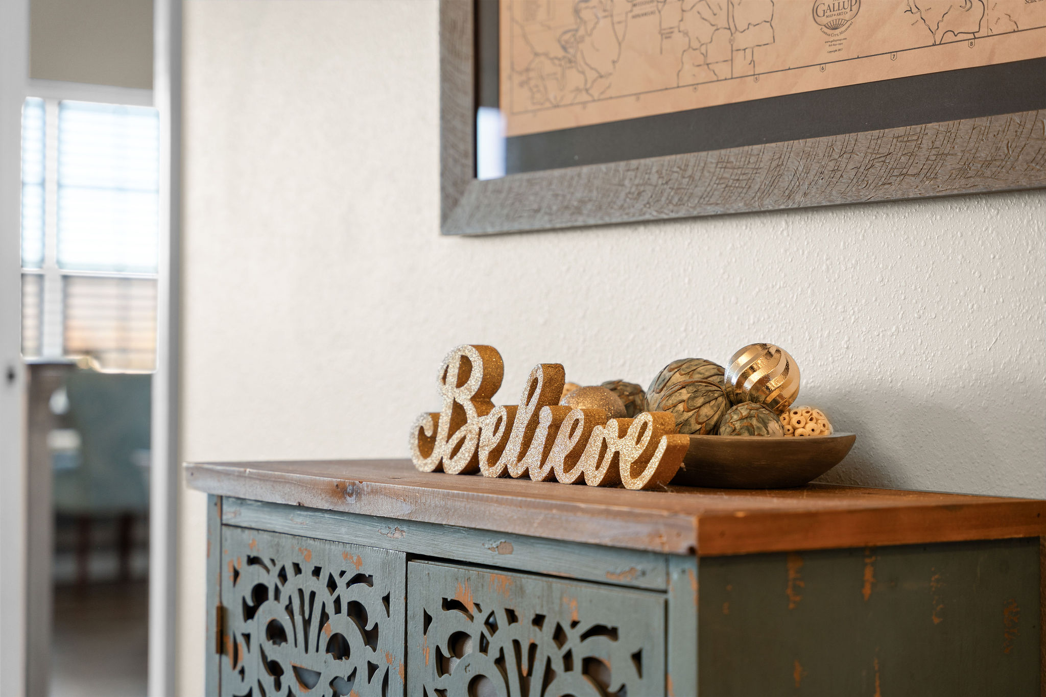 Each of our three bedrooms comes with a luxurious king-size pillowtop bed and is decorated with a unique Branson-inspired theme. The Lake Room offers stunning views of the lake and a private master bath, while the Music Room is dedicated to all-things live music, complete with a vintage record player, vinyl record collection, and cool artwork. Meanwhile, the Silver Dollar City Room features bunk beds for the kids, a full-size map of Silver Dollar City, and pictures of the famous SDC train and Wildfire roller coaster.